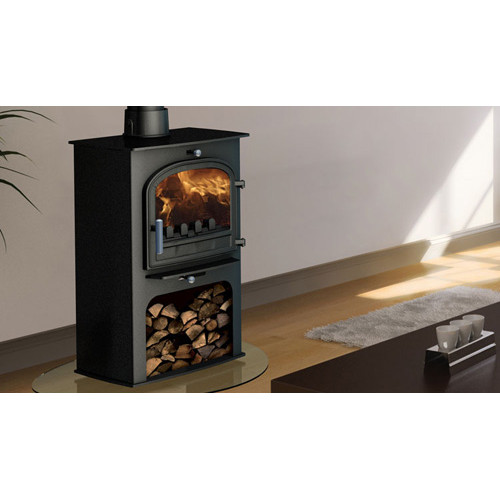 Make the Nørreskoven the heart of your living room. You dont need a traditional fireplace or mantel to install this wood-burning convection stove. The European model is an all-in-one unit with a built-in log store.