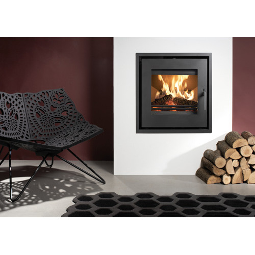 Danish Designed Inset wood burning stove with its large glass and clean contemporary design its perfect to match any decor.